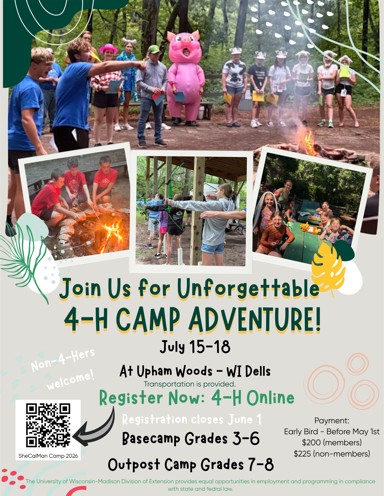 Join us July 15-18, 2026, as we head to Upham Woods for an unforgettable 4-H Summer Camp experience!